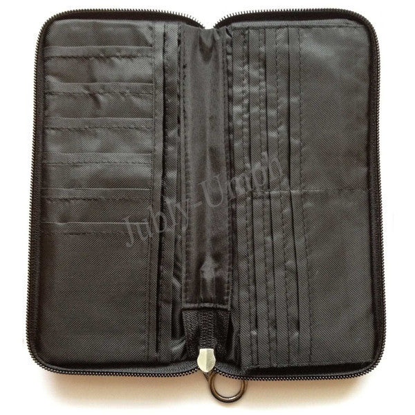 ·         12 card spaces, 3 note spaces and a zip coin pouch